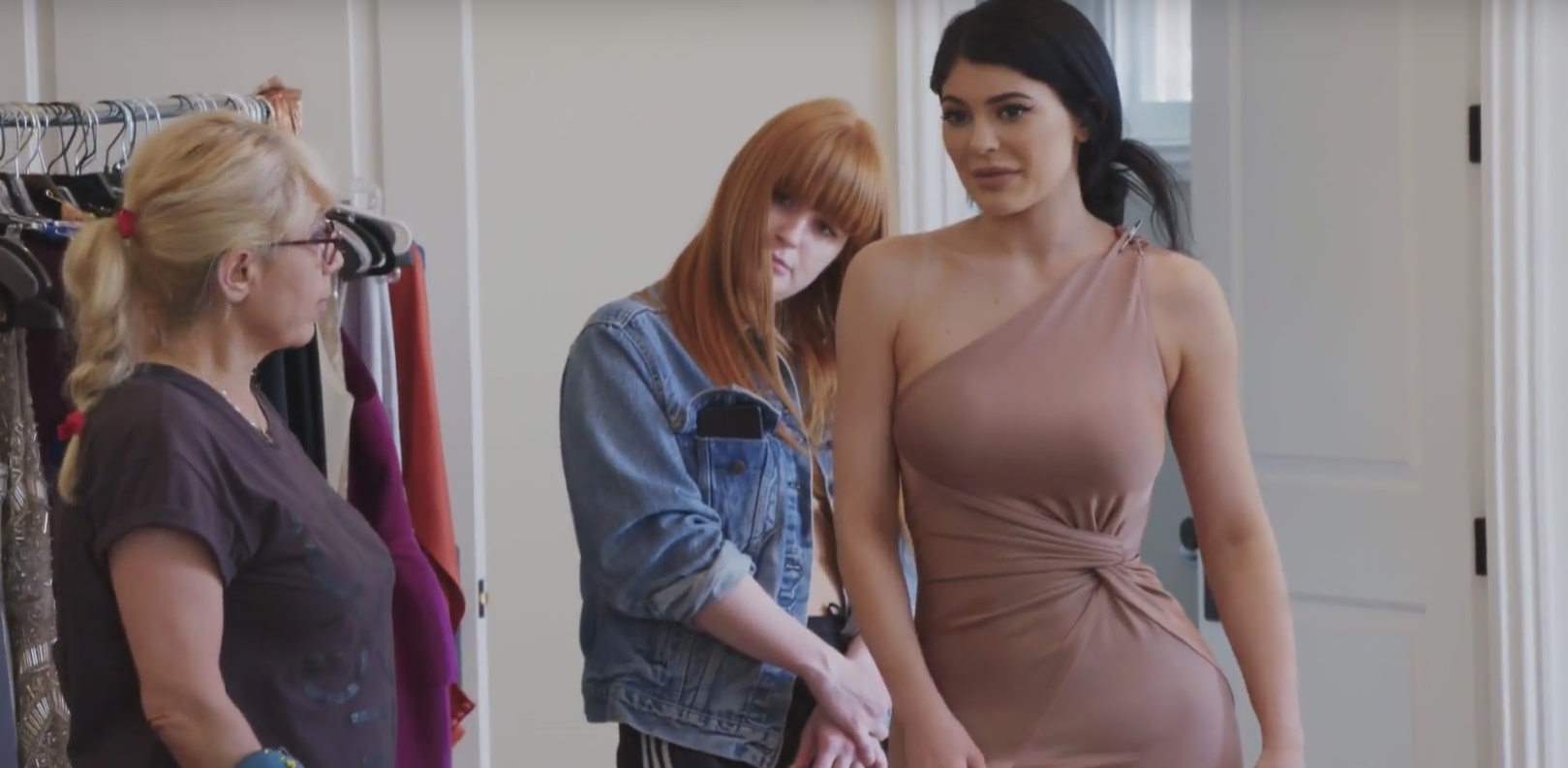 Em teaser divulgado hoje de “Life of Kylie”, podemos ver a filha de Kris Jenner experimentando alguns modelitos de vestido… o primeiro deles é reprovado por deixar os peitchos muito á mostra. Após Kylie bater o martelo sobre o look, a assistente dela, Victoria lhe mostra uma foto de como foi vestida a seu baile de formatura e é aí que Jenner revela que não foi à festa de sua turma.