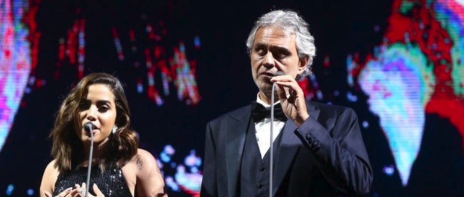 Anitta se apresenta com Andrea Bocelli em São Paulo; assista