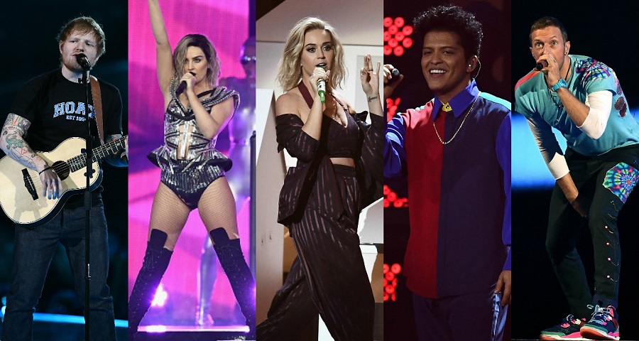 Entre as performances, tivemos lacres também de Bruno Mars, Katy Perry, Ed Sheeran, Robbie Williams, The 1975 e Skepta. Confira abaixo: