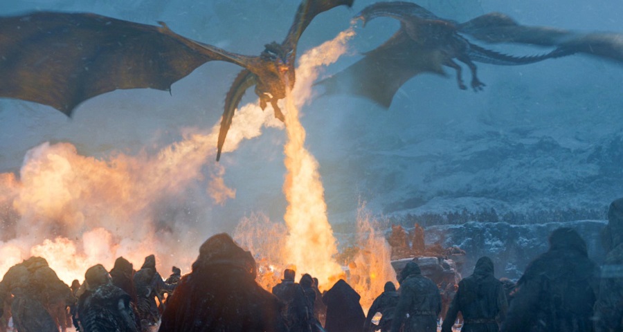 E todo esse desafio pode ser visto no vídeo dos bastidores liberado pela HBO nesta segunda (21), que mostra todos os detalhes de como foi feita a sequência da batalha. Primeiro, vemos que aquele lobo gigante que atacou nosso ‘esquadrão suicida’ era na verdade um homem com trajes próprios para os efeitos visuais. Também vemos o trabalho da equipe técnica para criar o cenário em Belfast, Irlanda do Norte, e para fazer o ataque dos dragões contra o exército dos mortos. Confira:
