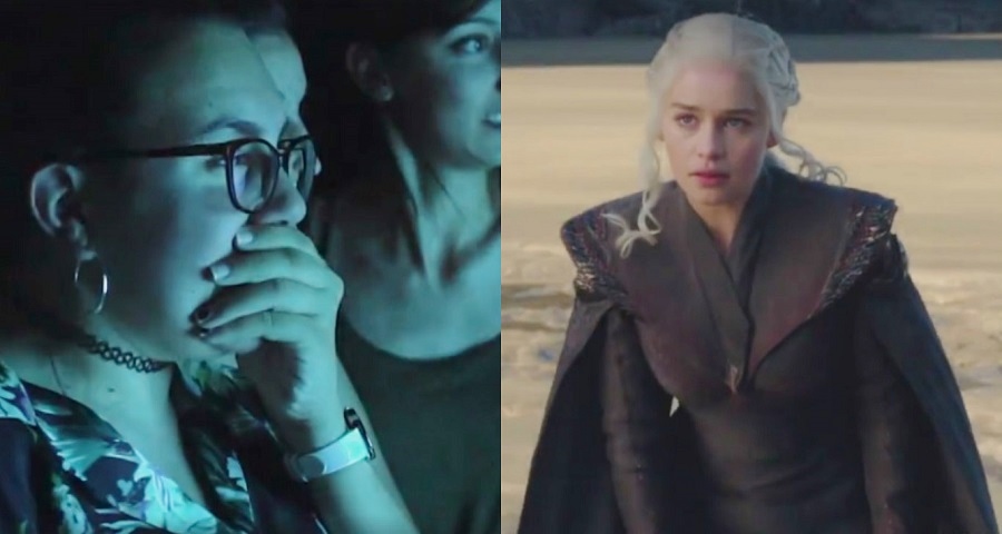 Eles tinham que abrir o portão de uma cabine interativa para ver “algo que nunca haviam visto antes”. Nessa hora, a Arya (Maisie Williams) aparece na tela e os convida a assistir cenas inéditas da série, além de registros de bastidores. Confira: